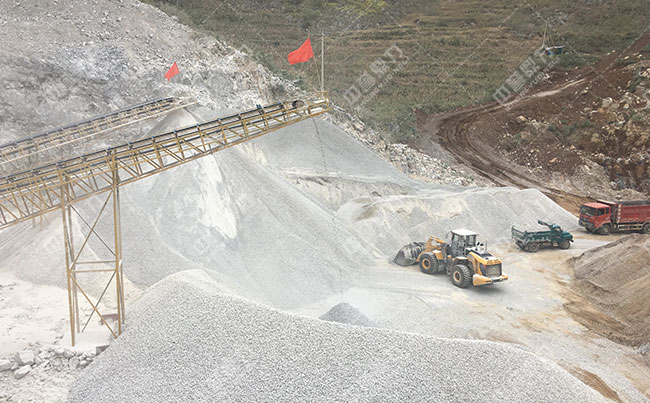 廣西省百色市富鵬建材時產(chǎn)500噸沙石骨料生產(chǎn)線于2016年正式投產(chǎn)。配置有主機1615破碎機,150給料機、2YKZ3070振動篩等,該配置方案適用于破碎石灰石、青石等軟質(zhì)物料。