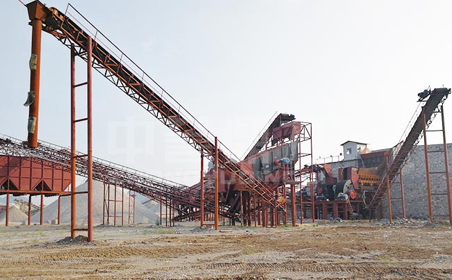 主要設備:振動給料機、錘式破碎機、整形破碎機、三層振動篩、雙層圓振動篩、皮帶輸送機等