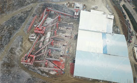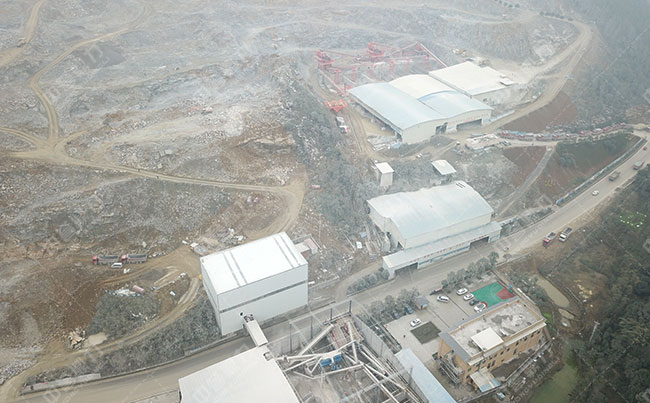 主要設備:振動給料機、重錘式破碎機、錘式整形機、圓振動篩、皮帶輸送機等。
