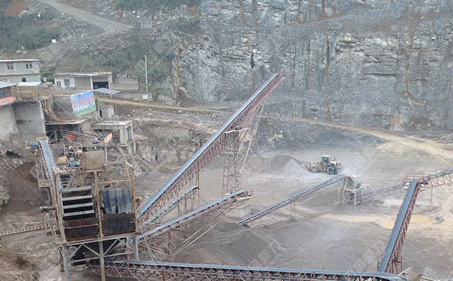 重慶市彭水同人實業時產500噸石料生產線于2017年中旬正式投入生產。主要配置了給料機、重錘破、整形機、振動篩,出料種類要求為05、12、13石子、石粉等建筑用料,是一條主要加工石灰石的采石場生產線。