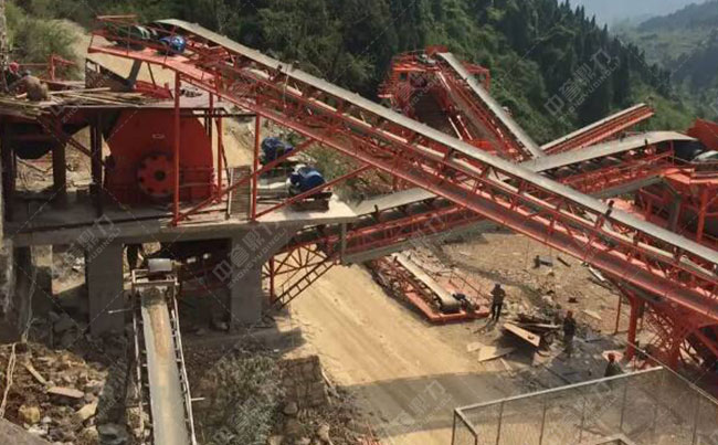 主要設備:振動給料機、重錘破碎機、圓振動篩、皮帶輸送機等。