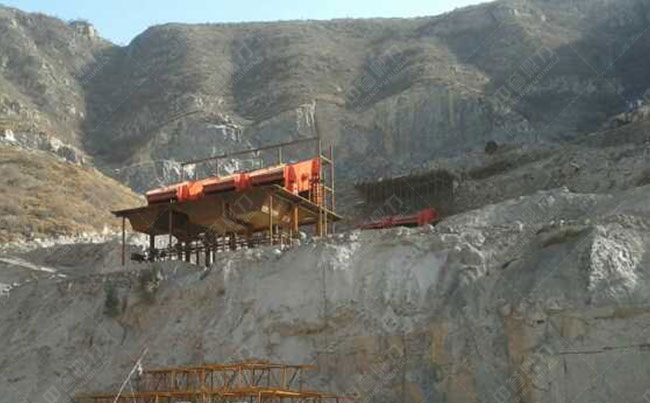 在生產現場看到,只有一臺破碎機設備,便完成了整體石料的生產,由輸送帶將物料傳送下去,直接輸送到運輸車輛內,省去了運輸物料的麻煩,整體操作是方便的,生產流程流暢。