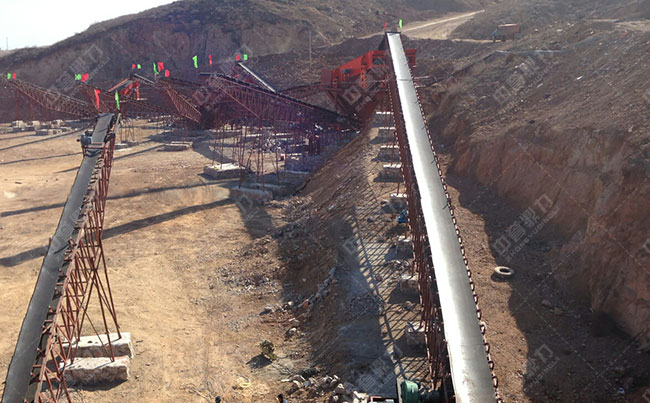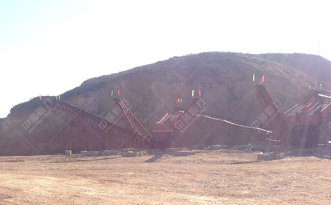 從圖中可以看到,數(shù)條皮帶輸送機(jī)向不同的流程輸送,這些皮帶機(jī)均是由我公司技術(shù)工程師為客戶量身制作的,各個(gè)生產(chǎn)流程配合良好,終完成成品骨料的生產(chǎn),成品骨料質(zhì)量達(dá)到較高的。