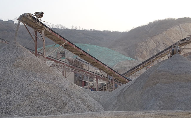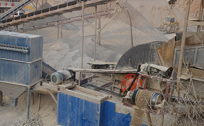 主要設備:振動給料機、重錘破碎機、錘式整形機、圓振動篩、皮帶輸送機等。