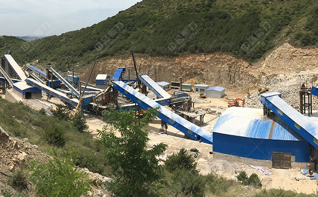 山西省長(zhǎng)治市欣興建材時(shí)產(chǎn)800噸采石場(chǎng)生產(chǎn)線于2018年6月正式投產(chǎn)。主要配置了給料機(jī)、重錘破、錘破、制砂機(jī)、振動(dòng)篩等,該配置方案適用于破碎石灰石、青石等軟質(zhì)物料。且投資成本較低,生產(chǎn)的石料的粒型好看,滿足各種建筑建材。