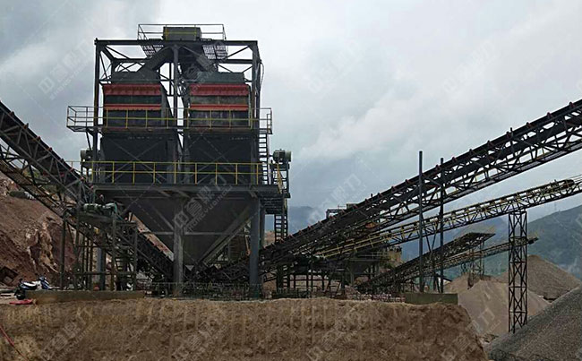 主要設備:振動給料機、重型錘式破碎機、雙轉子制砂機、圓振動篩等。
