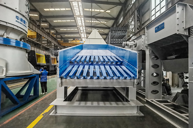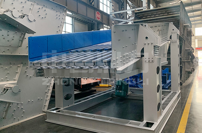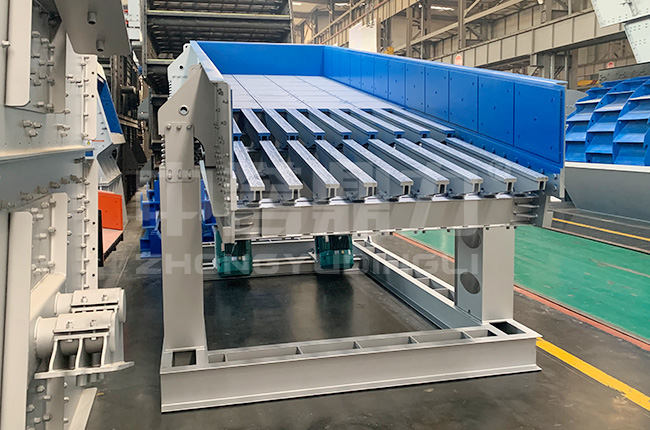 給料機是利用振動器中的偏心塊旋轉產生離心力,使篩廂、振動器等可動部分作強制的連續的圓或近似圓的運動。物料則隨篩廂在傾斜的篩面上作連續的拋擲運動,并連續均勻地將物料送至受料口內。