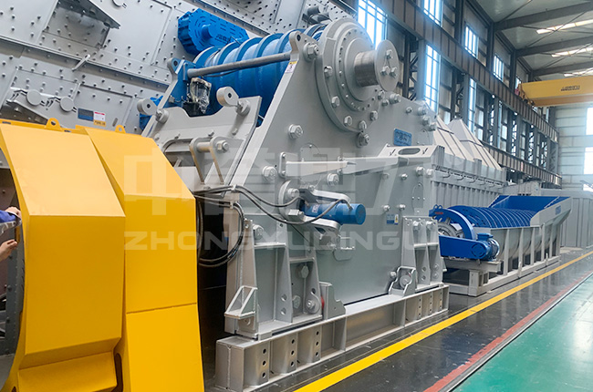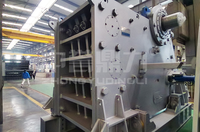 大型重錘式破碎機又叫重錘破,設備運轉過程中經高速運轉的錘體和物料碰撞而破碎物料的,具有結構簡單、一次成型、破碎比大、產品粒度小、生產效率高等特點,可作干、濕兩種形式破碎,適用于礦山、水泥、煤炭、建材、燃化等部門對中等硬度及脆性物料進行細碎。