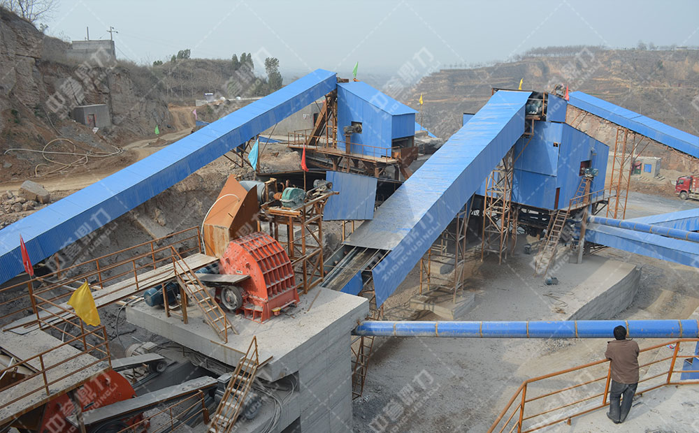 除一般的進(jìn)料設(shè)備、破碎設(shè)備和篩分設(shè)備外,石灰石破碎加工和開(kāi)發(fā)線還應(yīng)配備除塵設(shè)備。由于錘式破碎機(jī)軸承轉(zhuǎn)速高,容易產(chǎn)生風(fēng)機(jī)在設(shè)備運(yùn)行中的作用,在破碎腔內(nèi)產(chǎn)生高壓,促使物料破碎排出口排出,這就起著除塵器的作用。