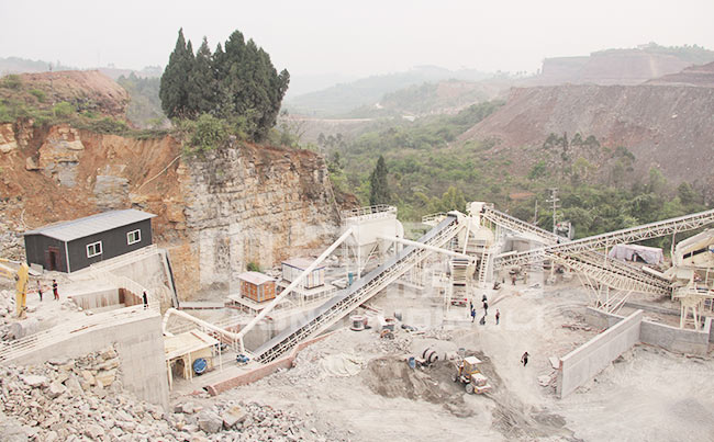 砂石料生產線的基本流程:大塊石料經料倉由振動給料機均勻地送進破碎機進行破碎,破碎后石料由皮帶輸送機送進振動篩進行篩分,篩分出幾種不同規格的石子,滿足粒度要求的石子由成品皮帶輸送機送往成品料堆;不滿足粒度要求的石子由皮帶輸送機返料送到破碎機進行再次破碎,形成閉路多次循環。成品粒度可按照用戶的需求進行組合和分級,為保護環境,可配備輔助的除塵設備。